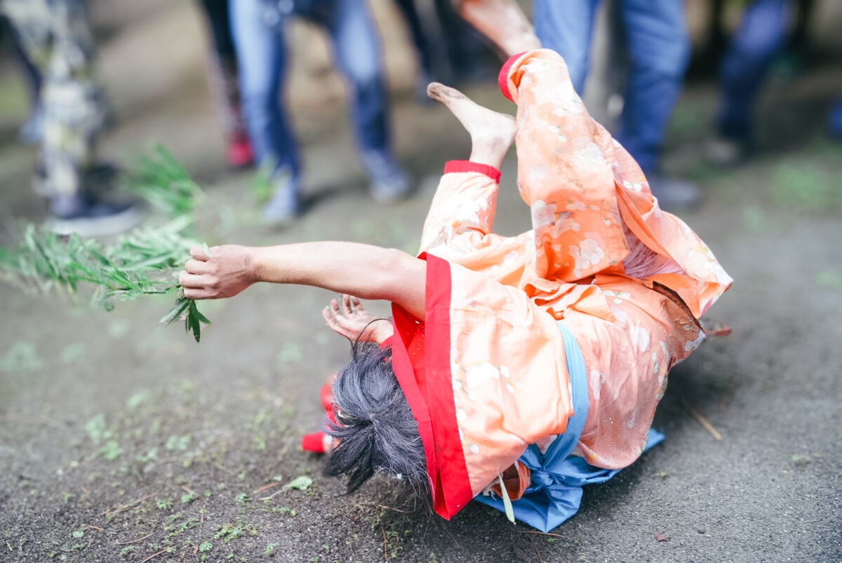 山の斜面も何のそので転がり落ちていくから「デス・ローリング」は筋金入り。体を張ったその行動に思わず拍手喝采が出るほどだった。天狗は一番天狗、二番天狗と続いて全部で三体登場。後にいくほど気性が激しく、暴れっぷりが激しくなっていくという。