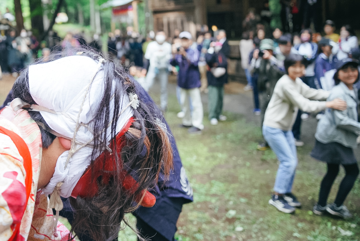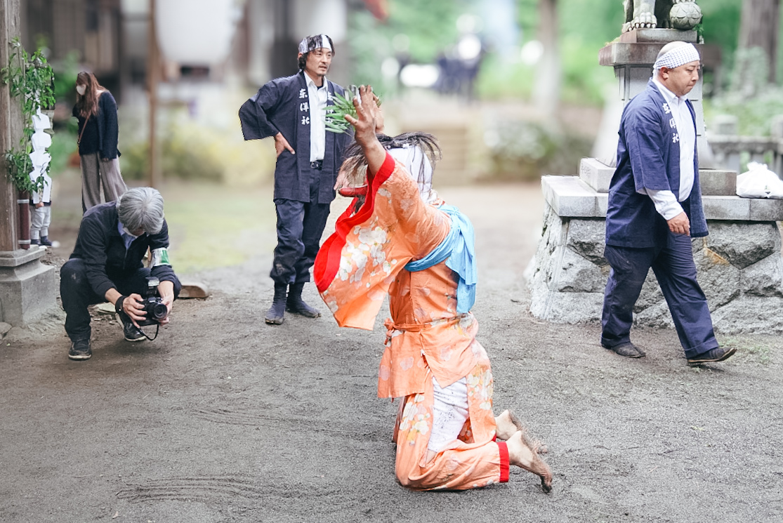 参拝が終わると、ホーホーと奇声を上げながら観客に向かって猪突猛進!次に何を始めるのか読めない行動が無軌道過ぎて、観客も困惑している様子だ。もう完全に獣の呼吸。