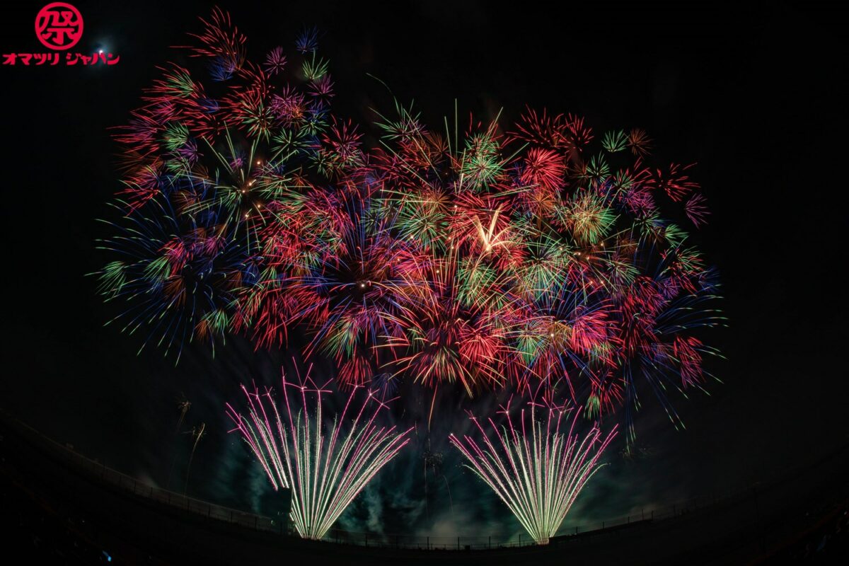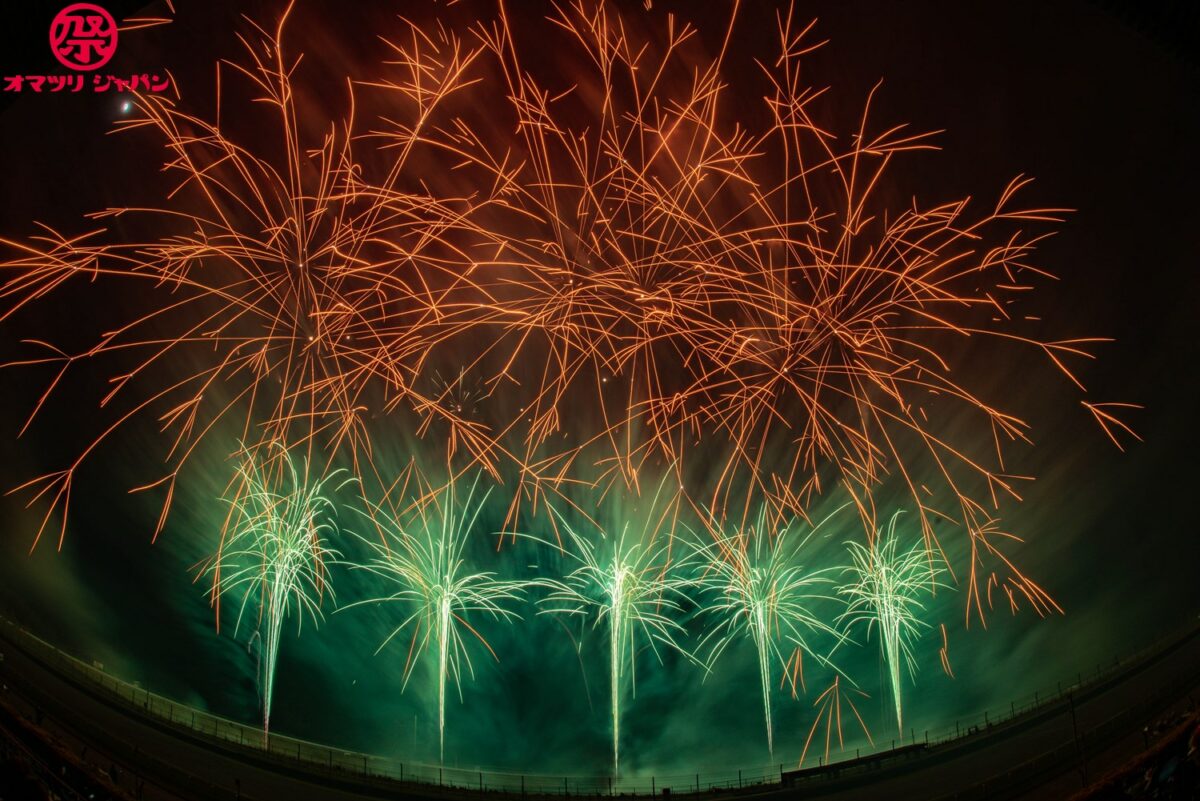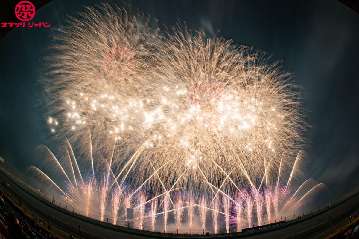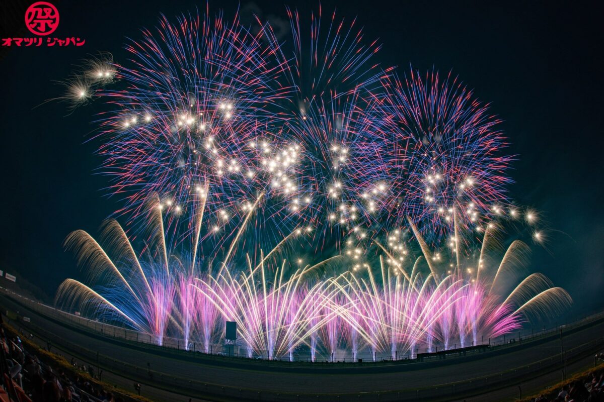 サーキット場の地形を生かした最長200mのワイド展開のスターマインや最大号数10号(尺玉)30発を含む約10,000発の花火を打上がります。