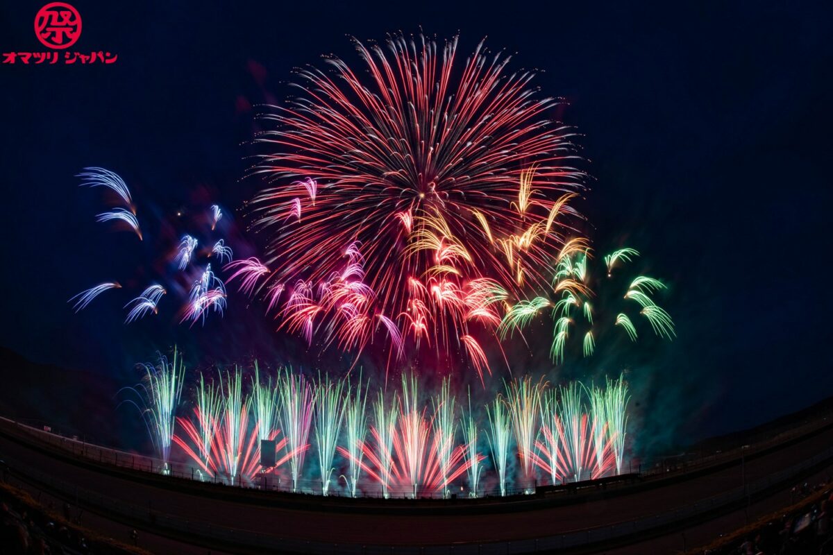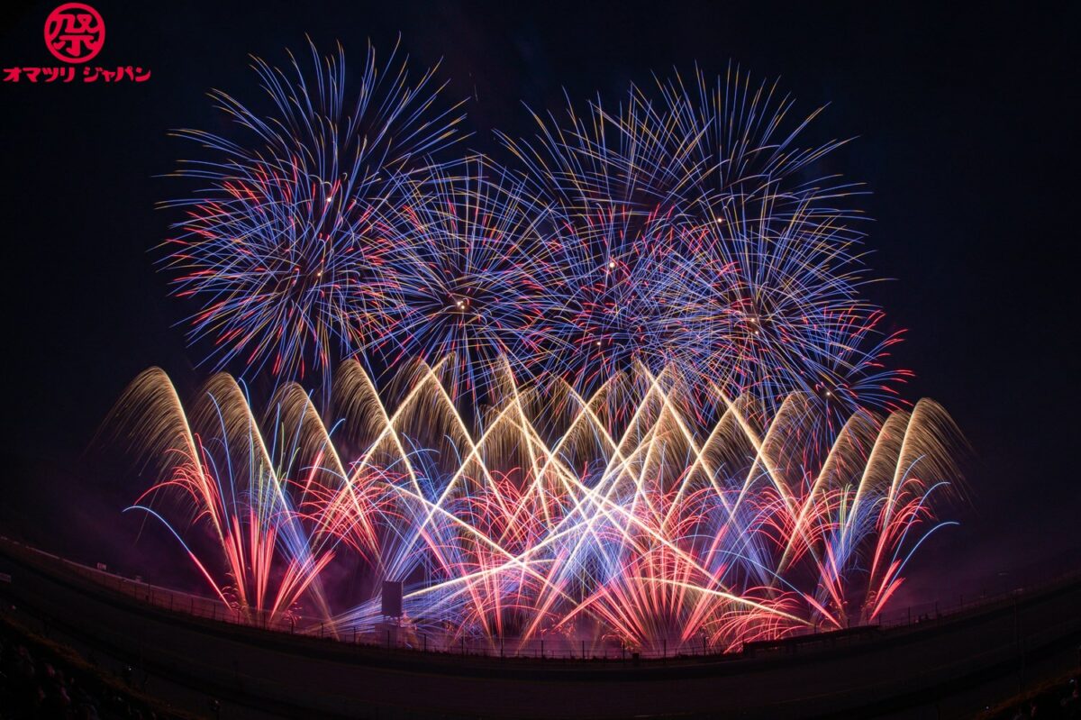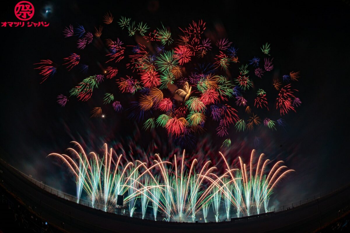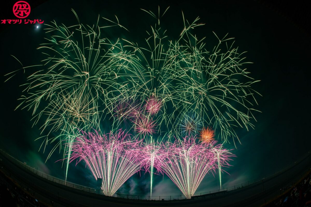 サーキット場の地形を生かした最長200mのワイド展開のスターマインや最大号数10号(尺玉)30発を含む約10,000発の花火を打上がります。