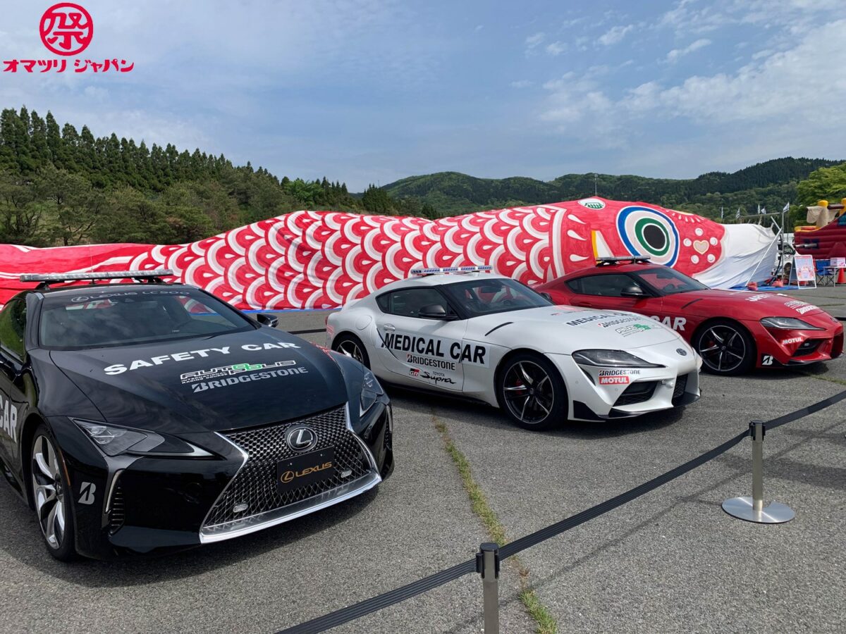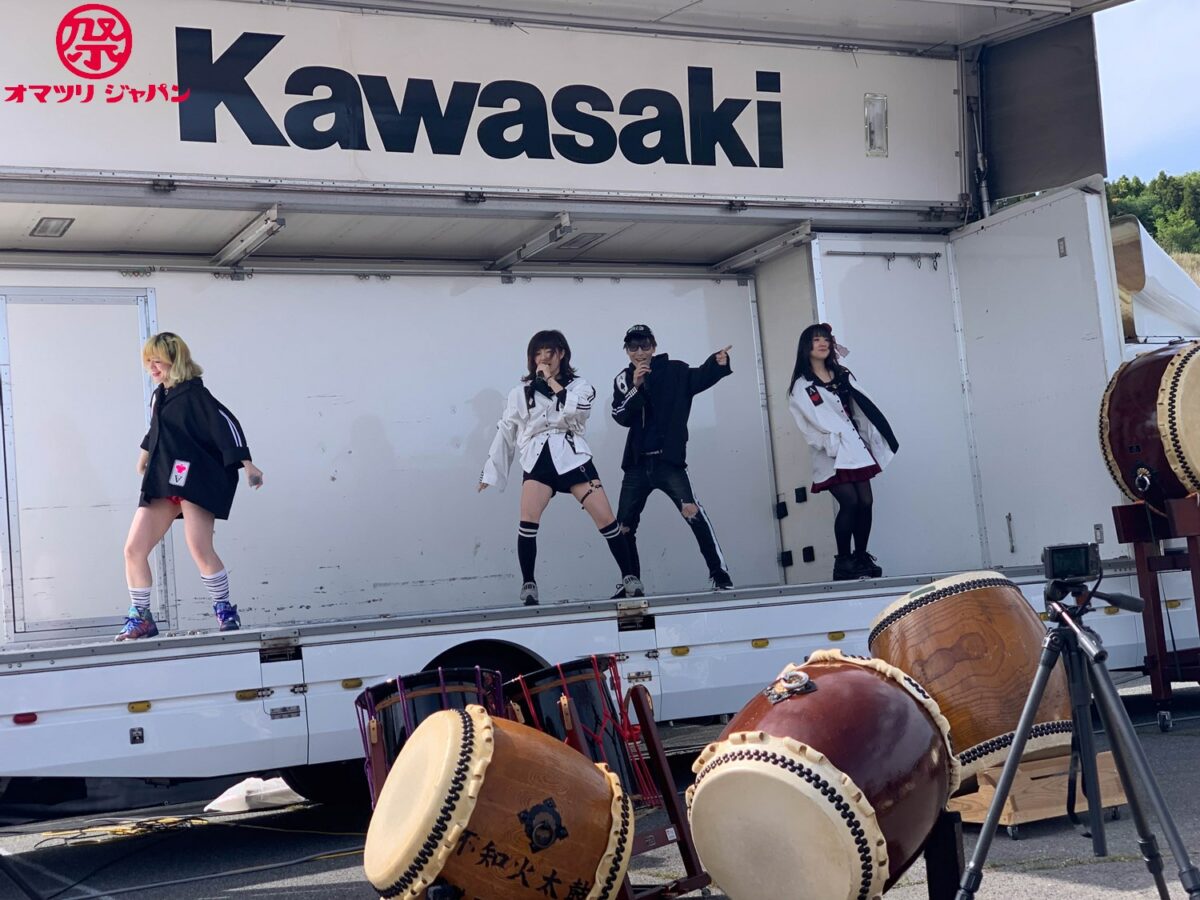 イベント広場では、飲食ブースやステージが用意され、太鼓演舞、サーキットクイーンステージ、キャラクターの登場などで、子供から大人まで楽しめる催しが開催されていました。