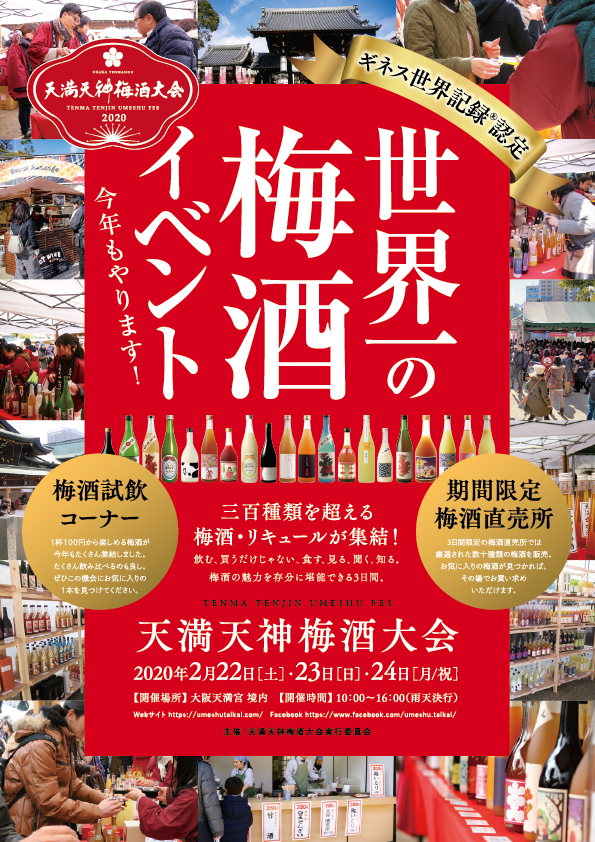 「天満天神梅酒大会」は、地方の隠れたスター梅酒を輩出し、酒蔵、神社、地域の商店街と一緒に成長し、2019年は全国から集められた295種類の梅酒が並べられ、【世界最大の梅酒イベント】としてギネス世界記録(R)に認定された。