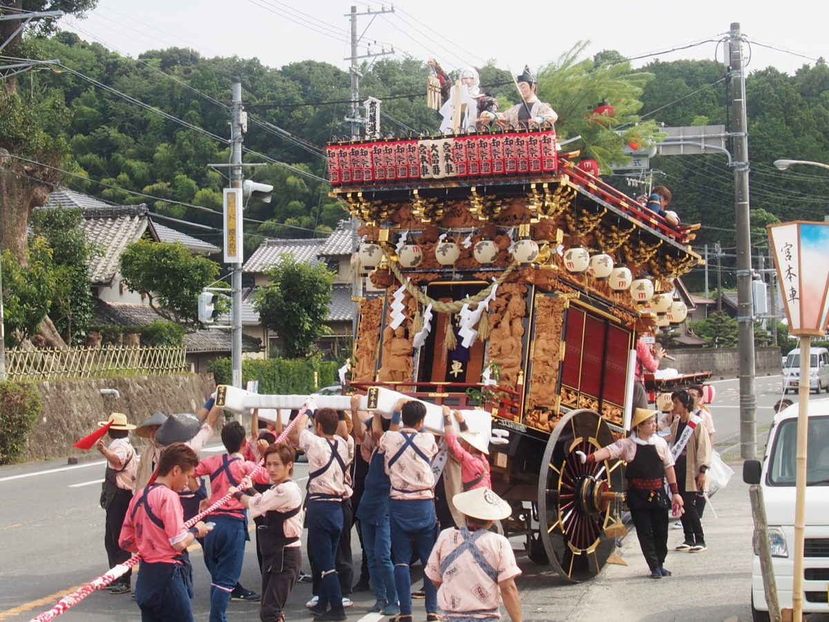山名神社祇園大祭は7月15日に近い金土日に開催のため、日程が京都祇園祭と重なってしまうのですが、蟷螂山で蟷螂の舞を奉納するのが山名神社天王祭舞楽保存会の、飯田地区の皆さんの夢です。
