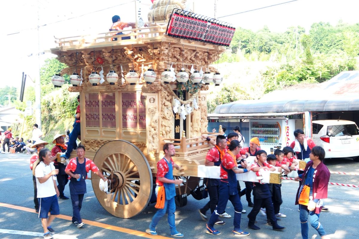祭が盛んな遠州でも、ここ山名神社にしかない舞と屋台の競演が見られます。