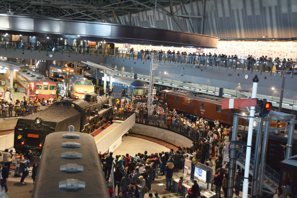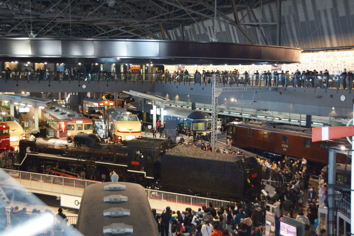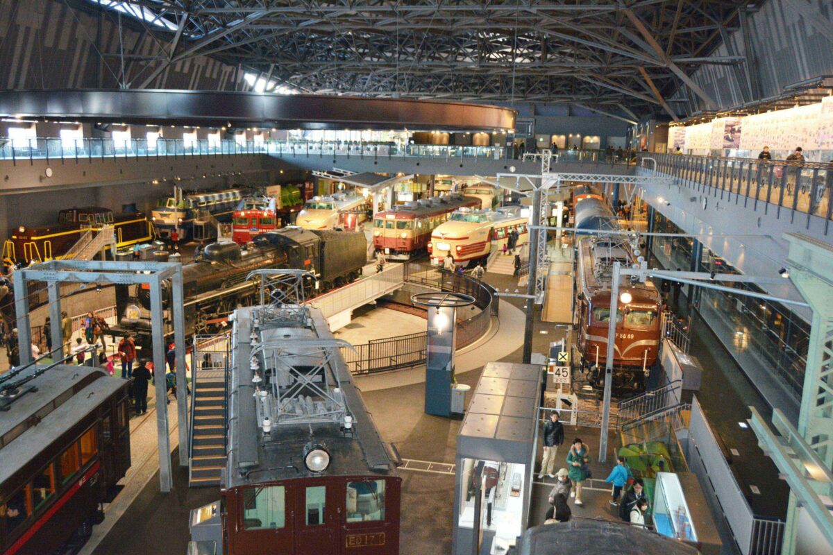 エントランスゾーンから南に隣接する車両ステーションに足を踏み入れると、鉄道ファンにはたまらない光景が広がることでしょう。鉄道の開通以来、日本中を走り回った電車の車両が視界を覆い尽くすのです。早く車両に近寄って間近で眺めたくなることでしょう。