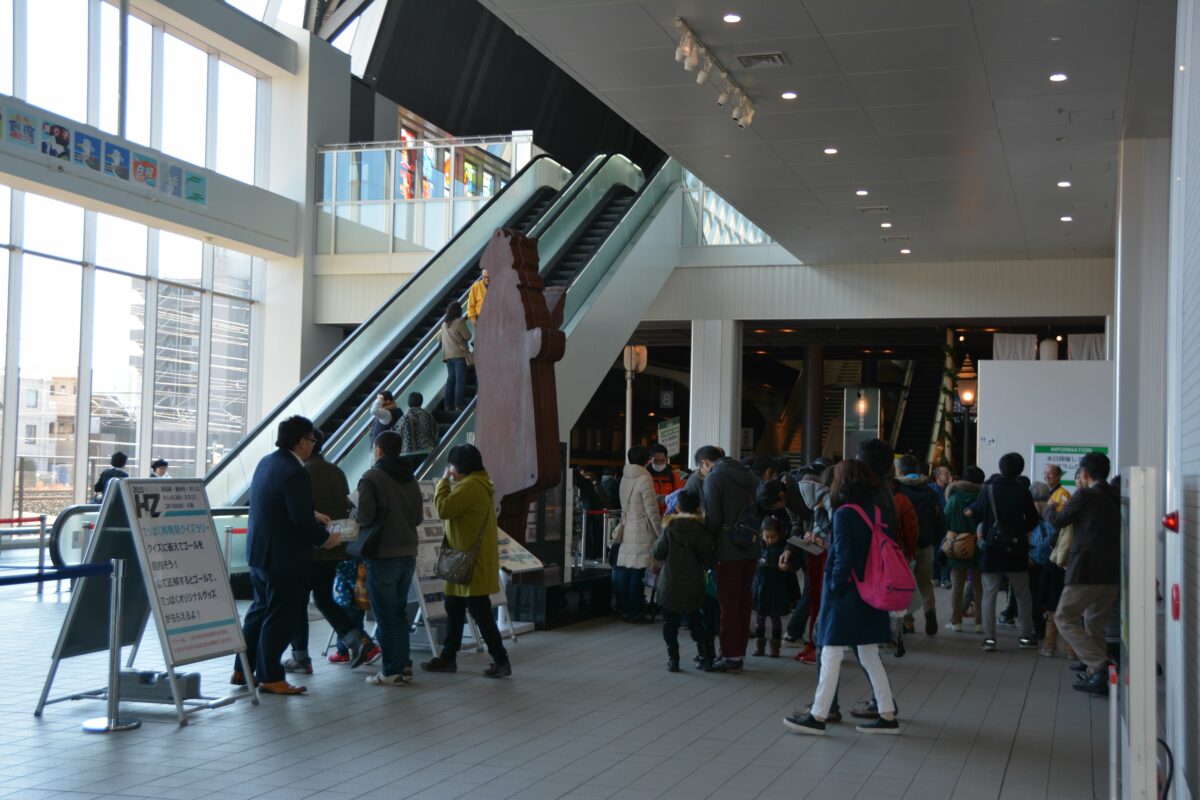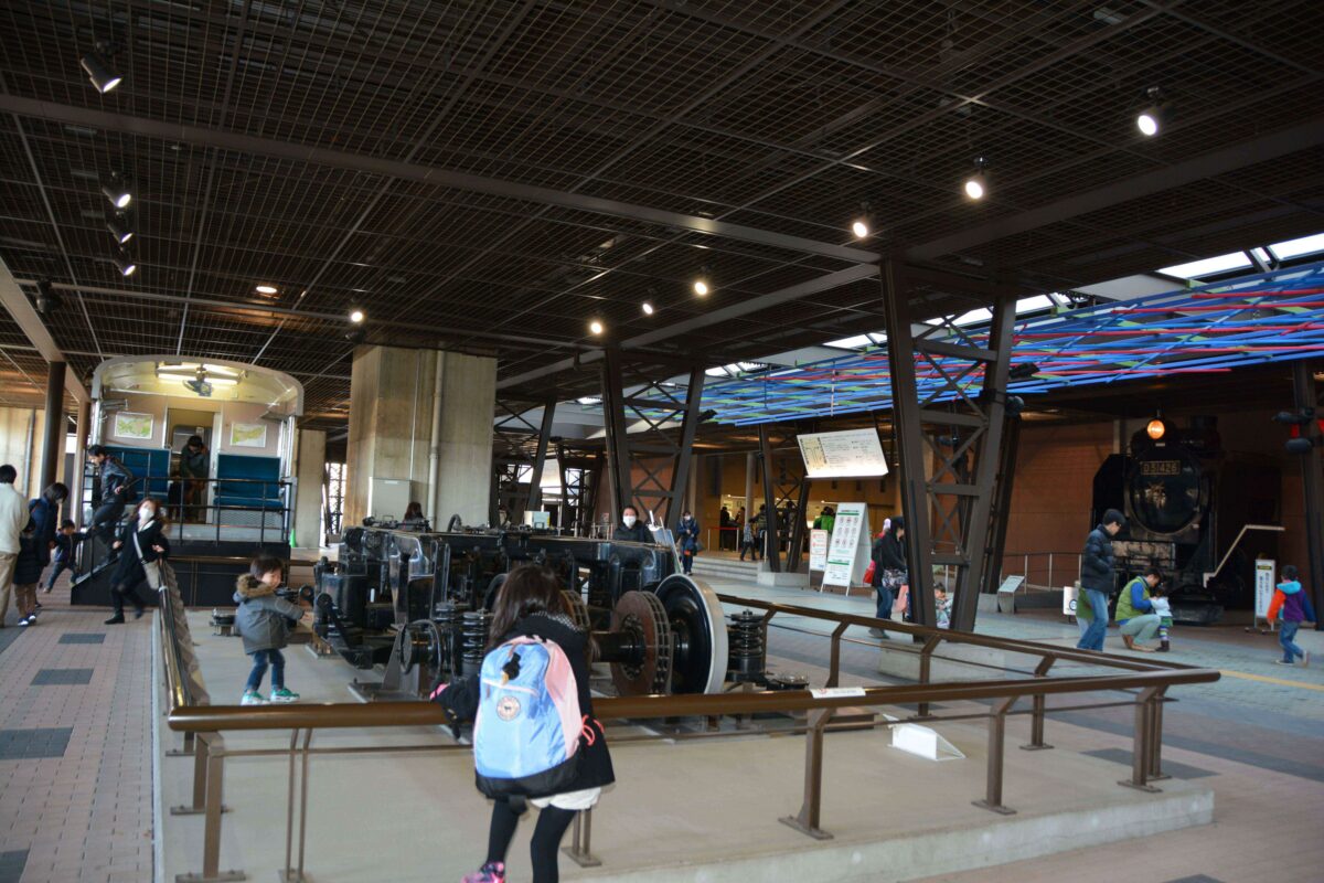 車両ステーションでは現役を終えた車両が静止していますが、平日の15:00には館内に汽笛の音が響き渡ります。ステーションの中央に設けられた転車台に展示されるC57 135形のSLが回転するのです。転車台回転の実演が行われているときは、SLの周辺ばかりでなく、吹き抜け2階のフロアからも大勢の人々が巨体の動きに目を見張ります。