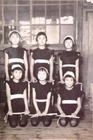 幼き日のとび喜代さん(前列右端)。学芸会でダンスをした時の写真だそうです。