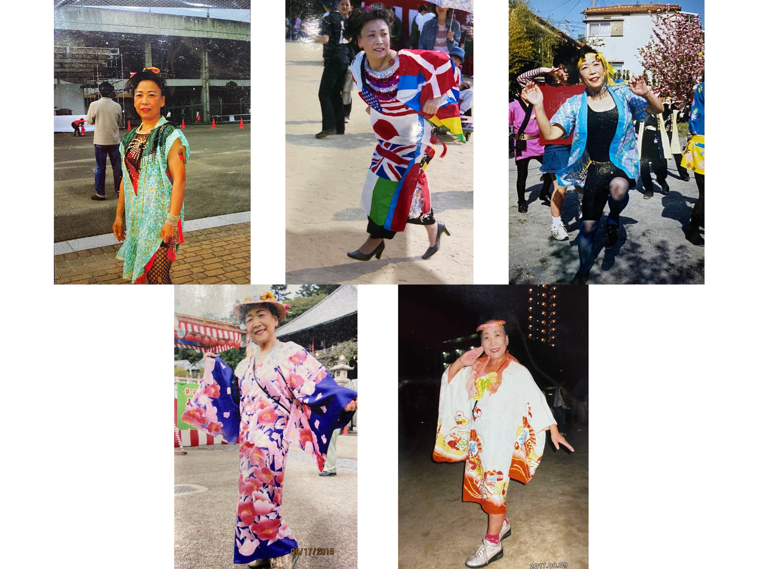 うん。もともと衣装は人に作ってもらっていたんですよ。盆踊りにハマってしばらく経った頃、衣装を作るのが好きな人がおって、人にも作ってあげると聞いたので頼んだの。そしたらめちゃくちゃ地味な色のものが出来上がって、「すみません、これはちょっと地味やから……」って作り直してもらった。気ぃわるくしたかもしれへんけど(笑)