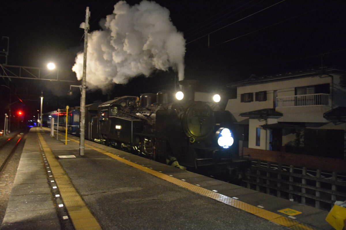 東武鬼怒川線内の小佐越駅に入線するSL大樹