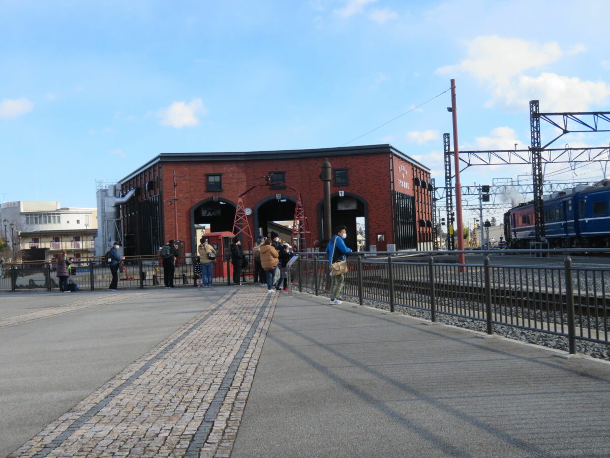 SL転車台に隣接してSL機関庫が設置され、運行を終えたSLが休息をとります。次の走行に備えてエネルギーを蓄えているように見えます。