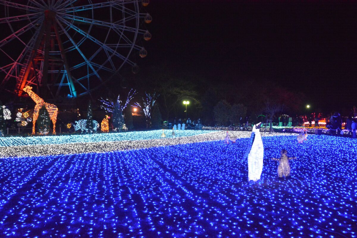 埼玉県の宮代町の東武動物公園はハイブリッド・レジャーランドとして、動物園や遊園地が融合されています。毎年冬季には「東武動物公園ウインターイルミネーション」が開催され、広大な敷地が鮮やかな彩りで輝きます。夜間に利用できるアトラクションも多く、楽しみは大きく膨らむことでしょう。