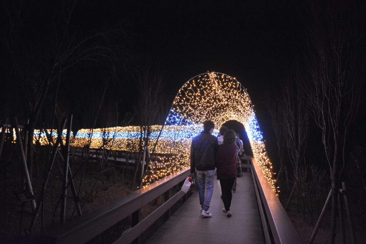 広大な園内の隅々にまで趣向が凝らされる光の演出