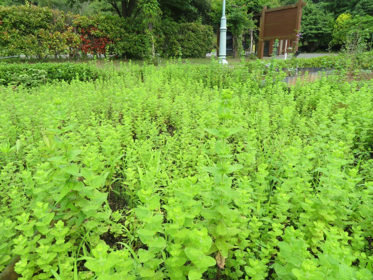多種多様のハーブが植栽されるみかも山ハーブ園の東部