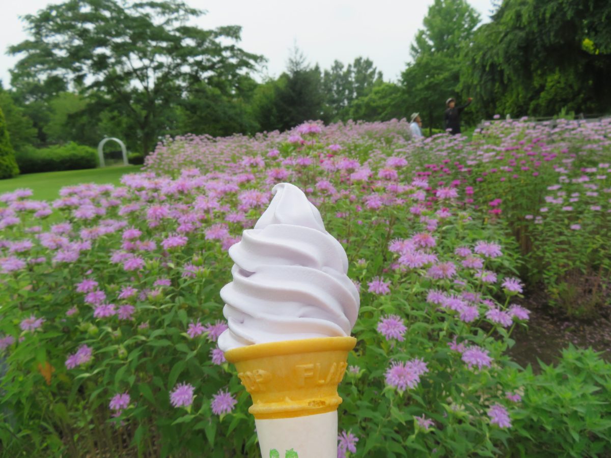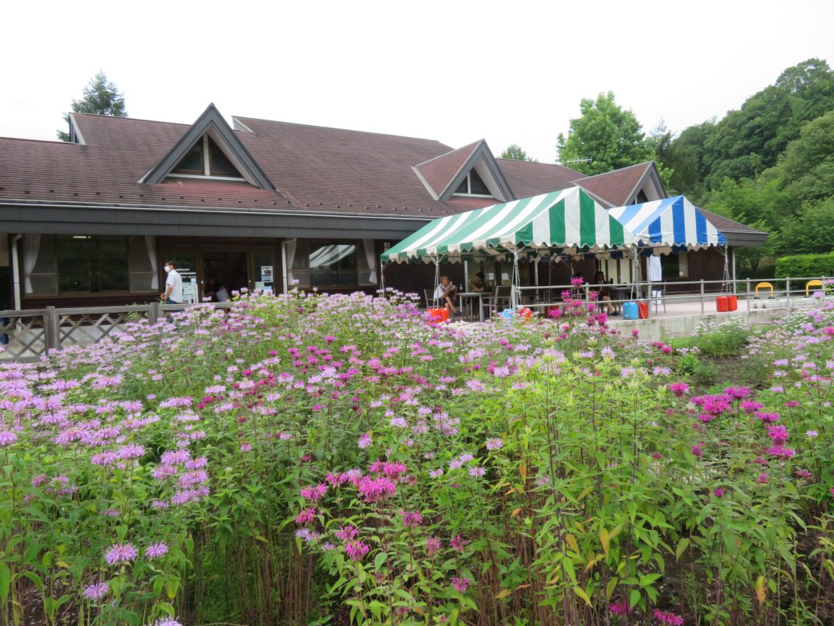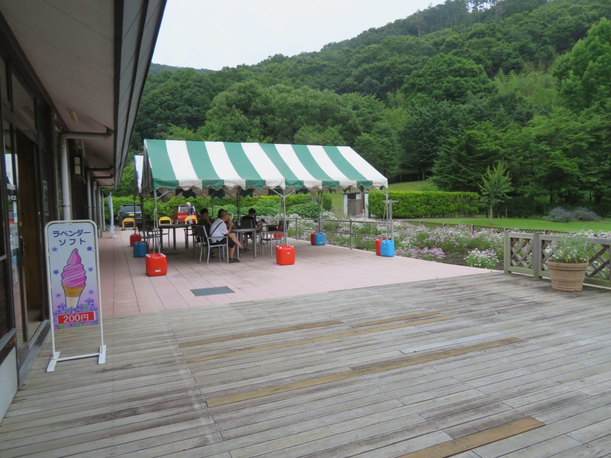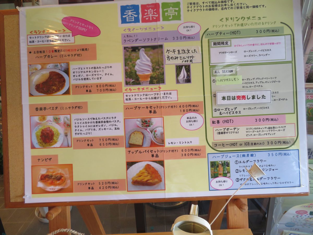 アロマな香りが漂うハーブ園にさらなる魅力を加えるのが、香楽亭です。ハーブの花に囲まれるテラスつきのカフェでは、ハーブティーをはじめ、ラベンダーが独特の風味がチャーミングな特製ラベンダーソフトクリーム、ハーブカレーなどを味わうことができます。