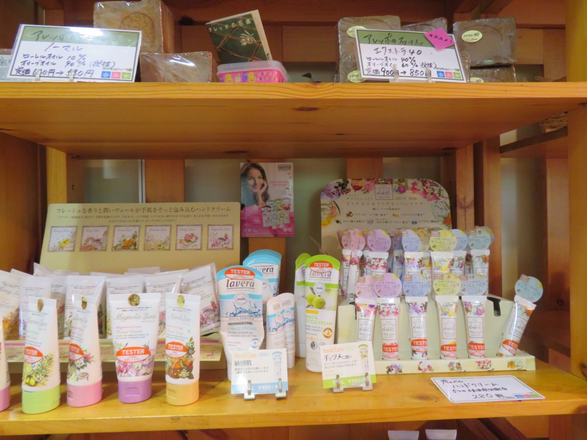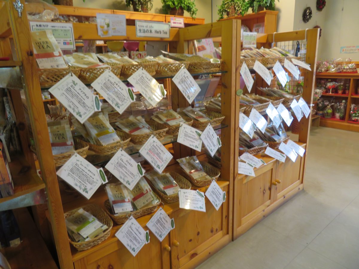香楽亭ではハーブの香りに包まれる中で、ドリンクやスイーツ、軽食が味わえるばかりでなく、売店の品揃えも充実しています。ハーブティー、ソープ、ローション、ハンドクリーム、エッセンシャルオイル、フレグラスミント、フレグラスフラワーなどに効果的なハーブがブレンドされています。美を追求する女性ならば売店を出るときには、ハンドキャリーのバッグがはち切れてしまうかもしれません。
