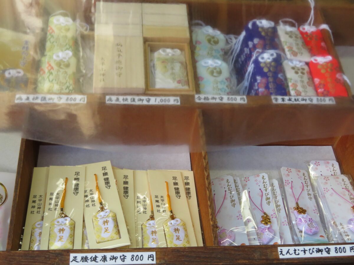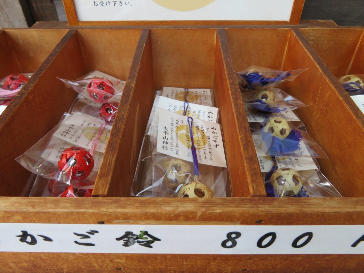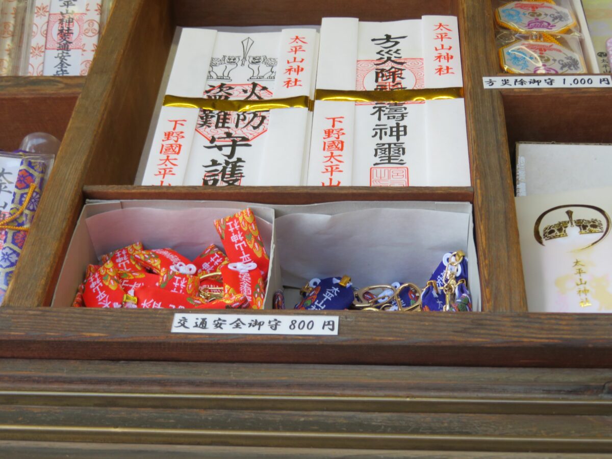 太平山神社では本殿の西に隣接する授与所で御朱印を頂くことができます。授与所には御朱印ばかりでなく、お守りやお札などの授与品が準備されています。バラエティー豊富な授与品の中には、めかご鈴、火防獅子の土鈴に目を引かれます。太平山神社には火防獅子の伝説が伝わります。戦国時代に北条氏政の侵攻によって太平山が戦場となったとき、火の手が回った神社に獅子像が舞い上がり雨を降らせ、ご神体を守ったと言われています。