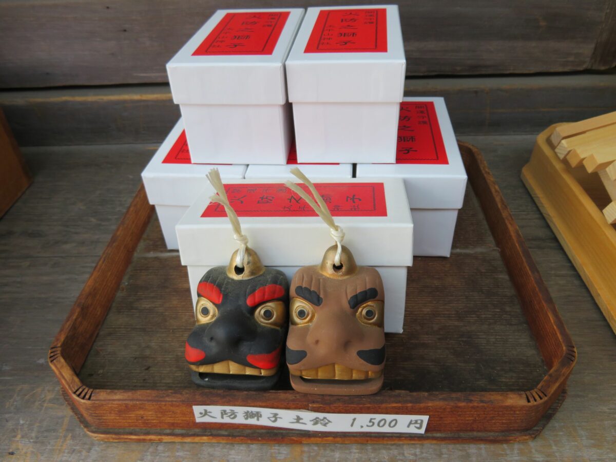 授与所に並ぶ火防獅子の土鈴