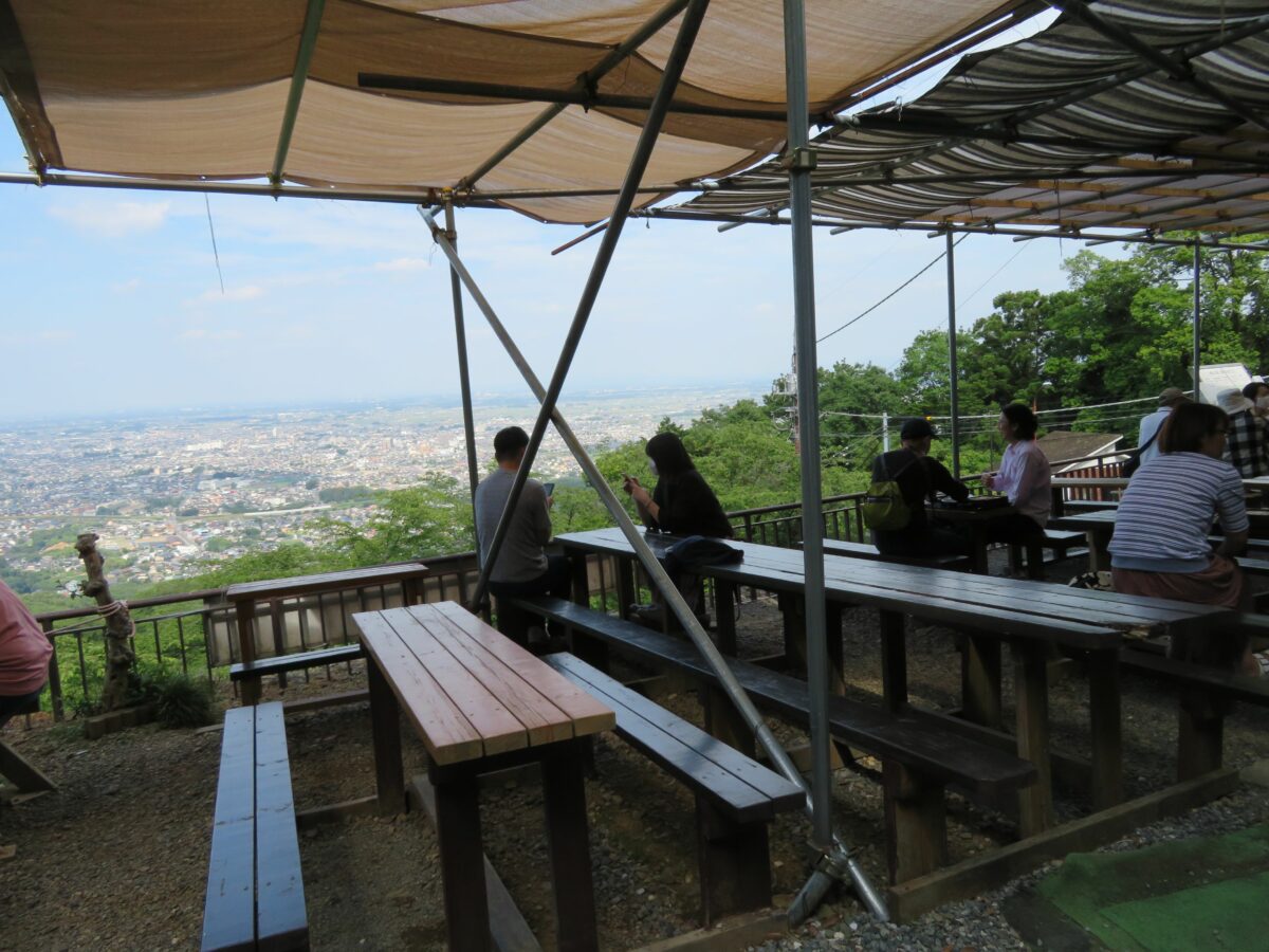 太平山神社の境内の東で営業する飲食店のテラス席