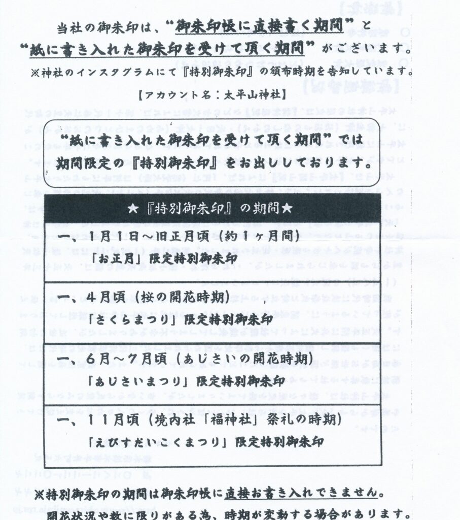 一年を通して季節限定の御朱印を頒布する太平山神社