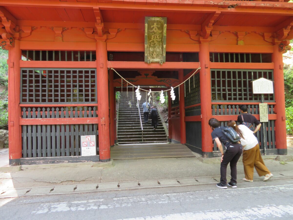 20前後の社殿は太平山の山頂付近に並んでいるので、山麓からは坂道を登らなければなりません。麓の六角堂から随神門まではあじさい坂と呼ばれています。随神門は1723年に、江戸幕府第8代将軍の徳川吉宗によって入母屋造り扇垂木の様式を採用して建造されました。あじさい坂を登り終えた後も、本殿に向かって石の階段がせり上がります。門から石段を見上げると、思わず「まだあるの」と口走ってしまうようです。