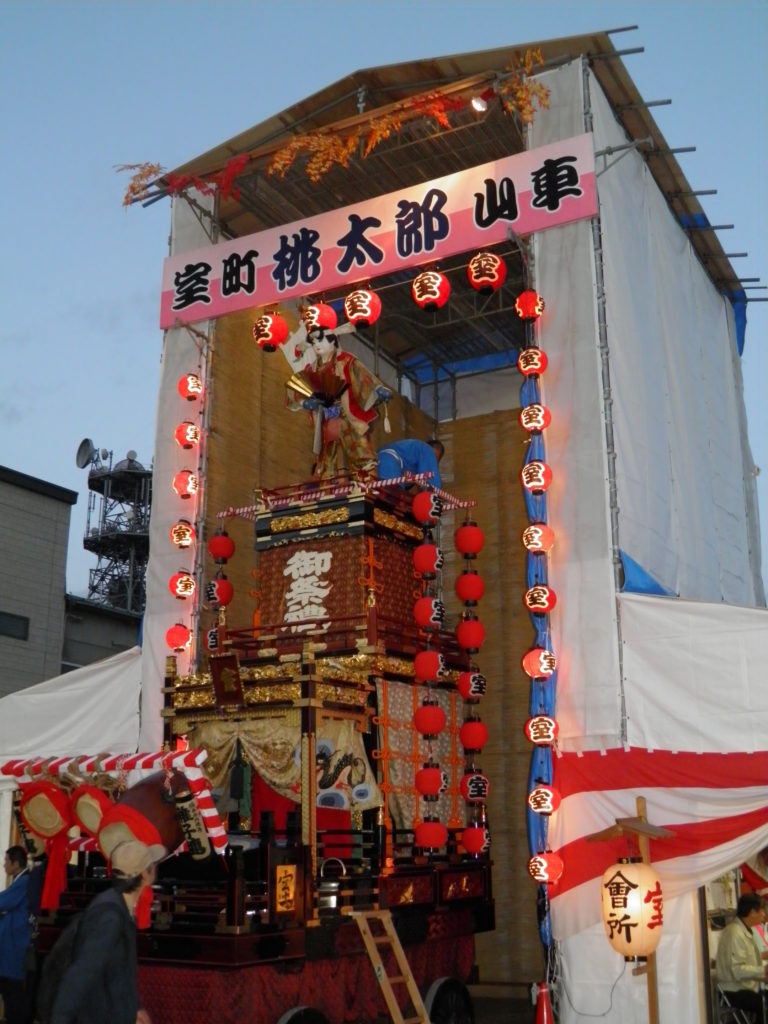 桃太郎の人形を掲げる室町の山車(栃木県指定有形民俗文化財)