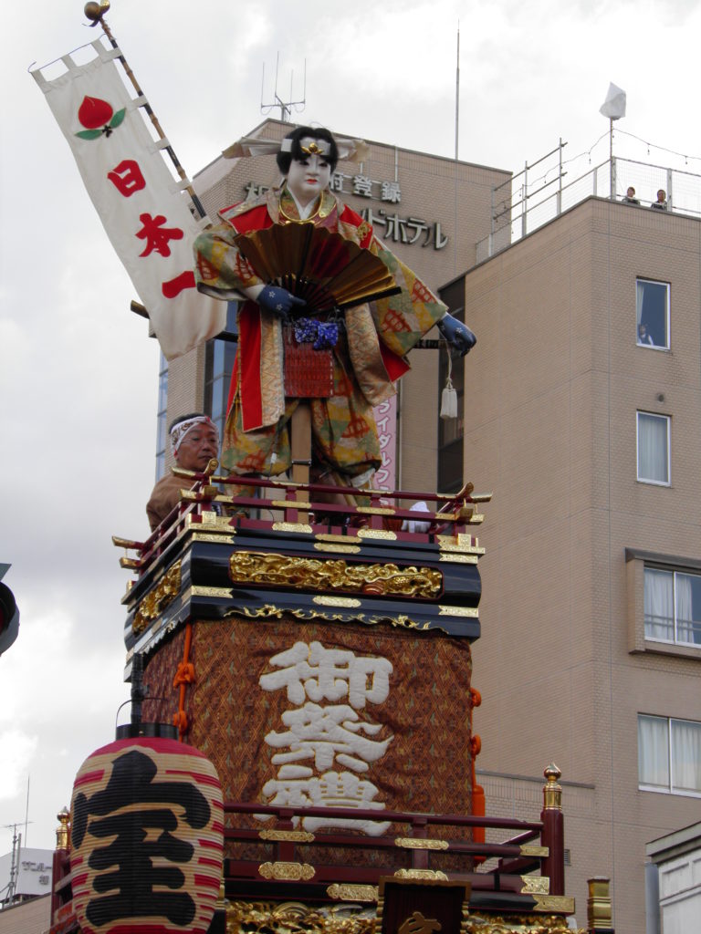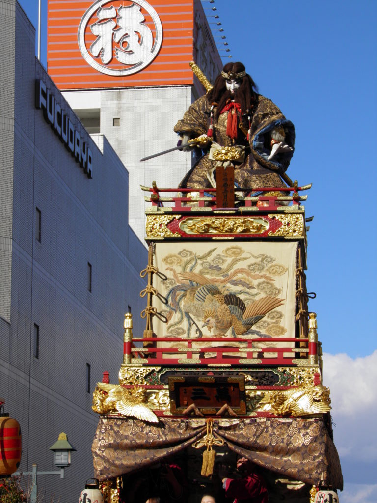 素戔嗚尊の人形を掲げる万町三丁目の山車(栃木県指定有形民俗文化財)