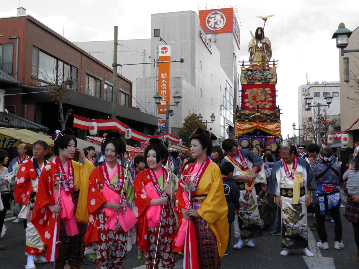 栃木市の蔵の街並みが熱気で溢れるのが「とちぎ秋まつり」の日です。「とちぎ秋まつり」は、1874年に市内の商人が、「静御前」や「諫鼓鶏」の山車を調達し神武祭で披露したことに始まります。かつては5年毎に行われていましたが、現在は隔年11月の上旬に開催され、次回の予定は、2020年11月6日(金)~8日(日)です。初日の「子供山車まつり」に始まり、土日に「本まつり」が行われます。メインストリートの「蔵の街大通り」を中心に絢爛豪華な江戸型人形山車が巡行します。