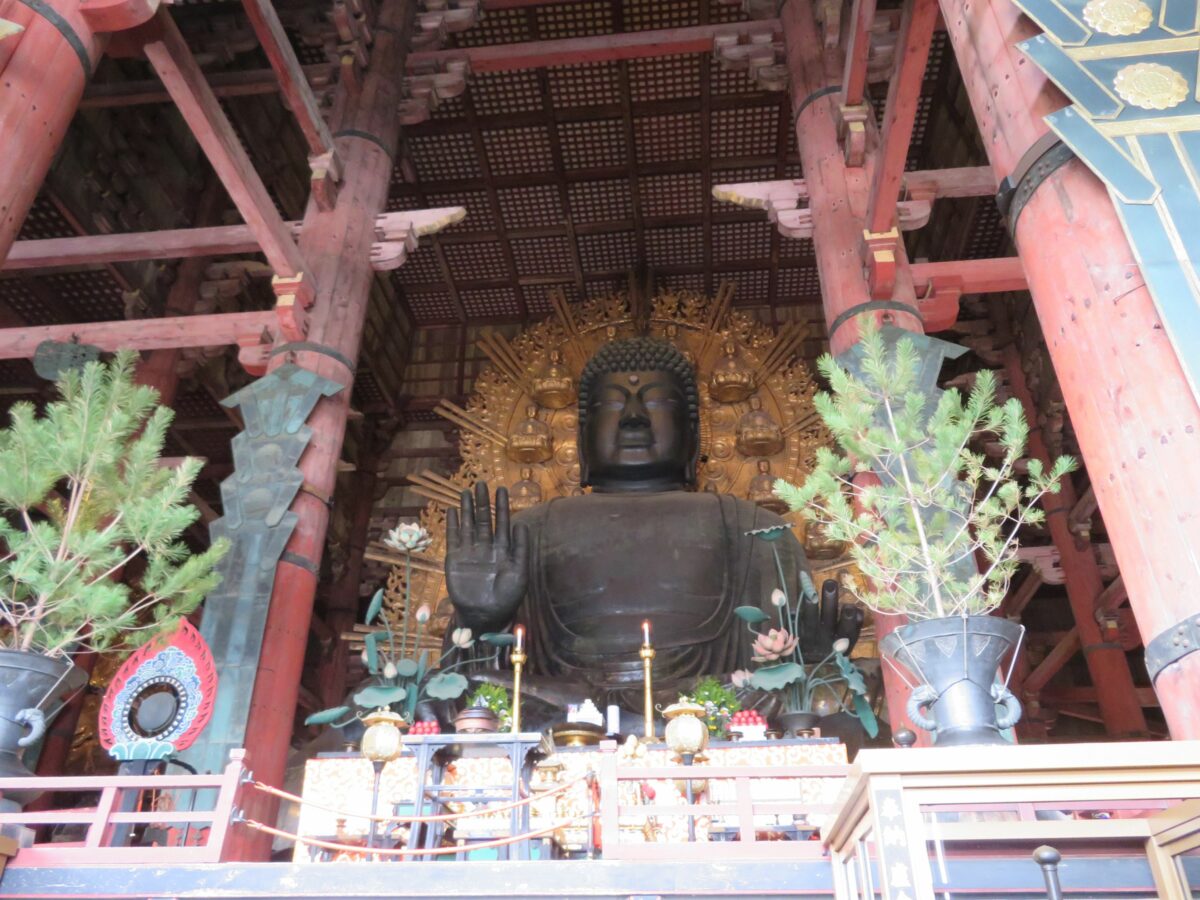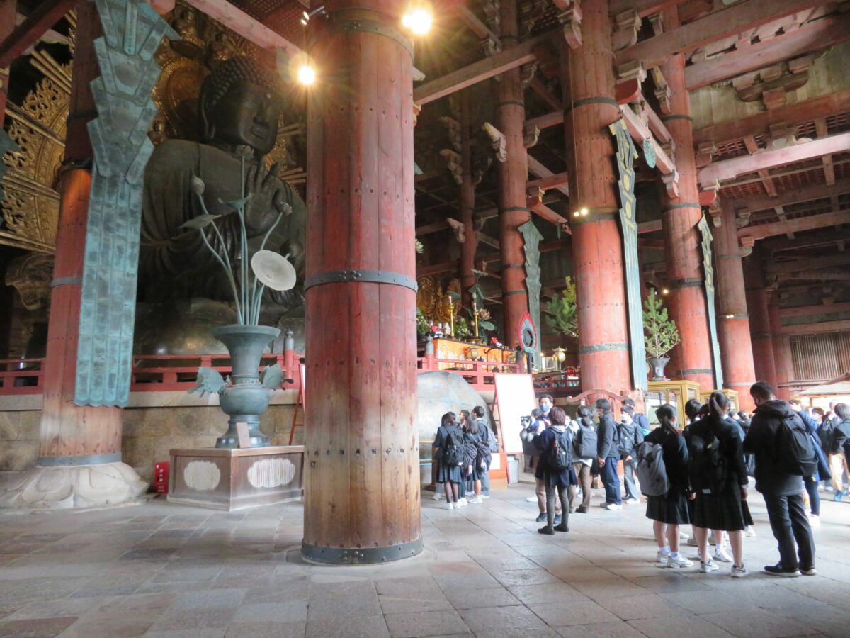 東大寺大仏殿の盧舎那仏の前