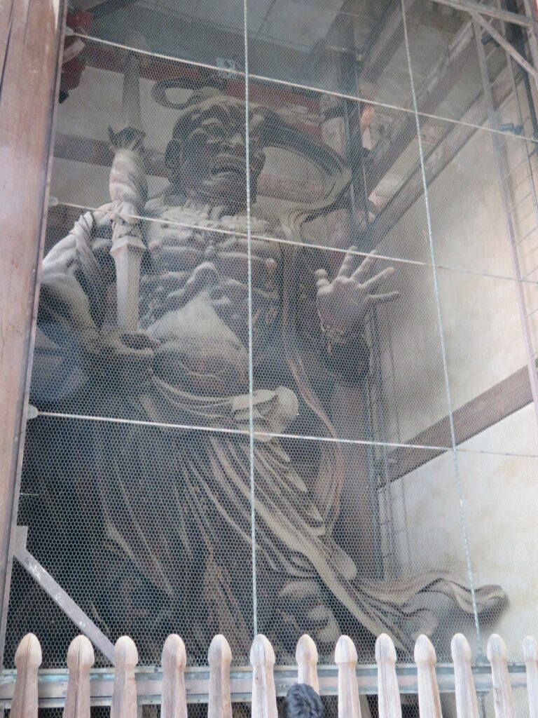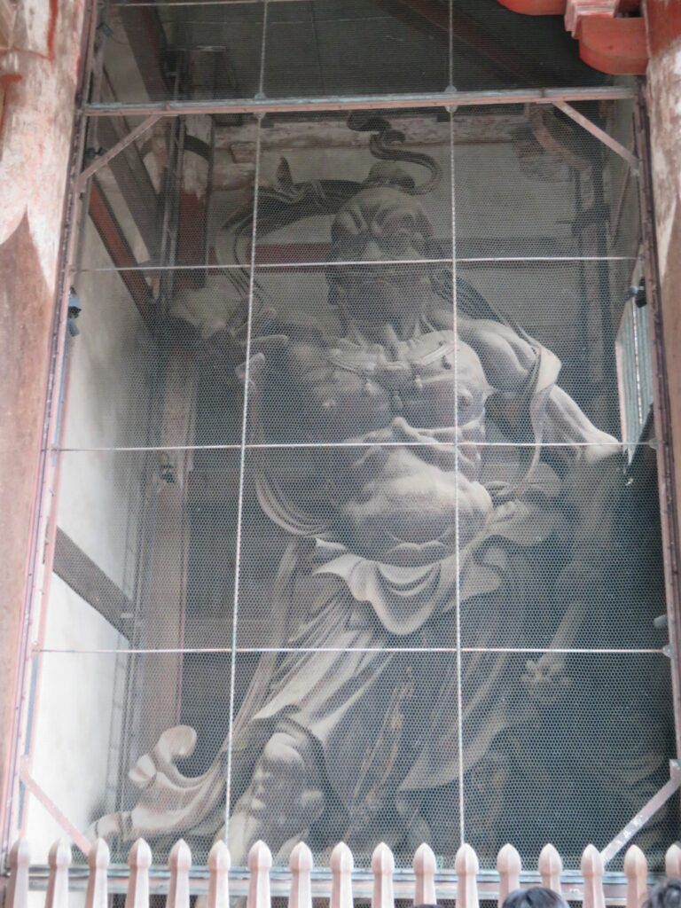 参拝者を見つめる南大門の金剛力士像