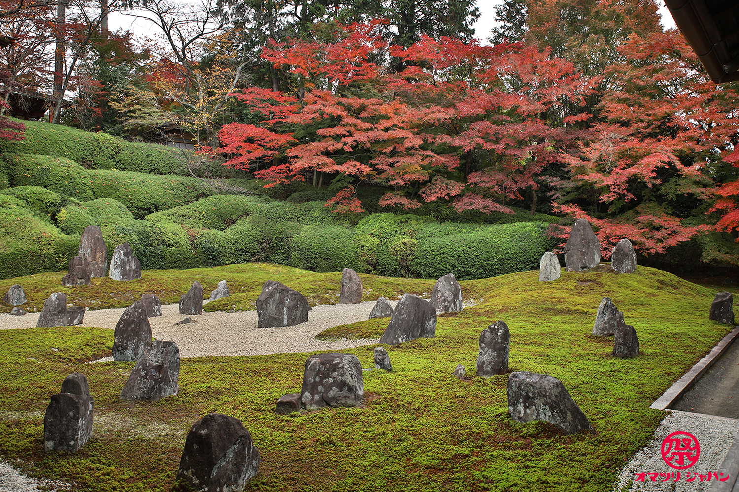 作庭家・重森三玲の枯山水庭園「波心庭」がみどころ。桜と紅葉の時期は特に美しくオススメ。