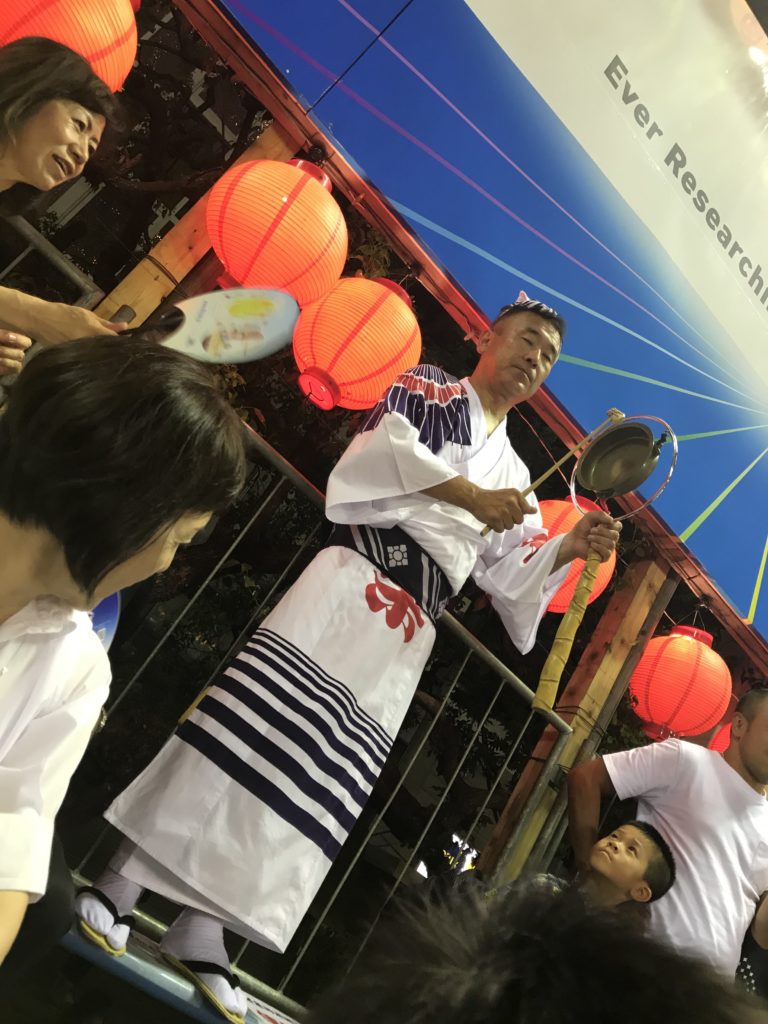よいよい囃子で踊りすぎて前半見逃したけれど、席が取ってある安心感。移動して総踊りを見る。