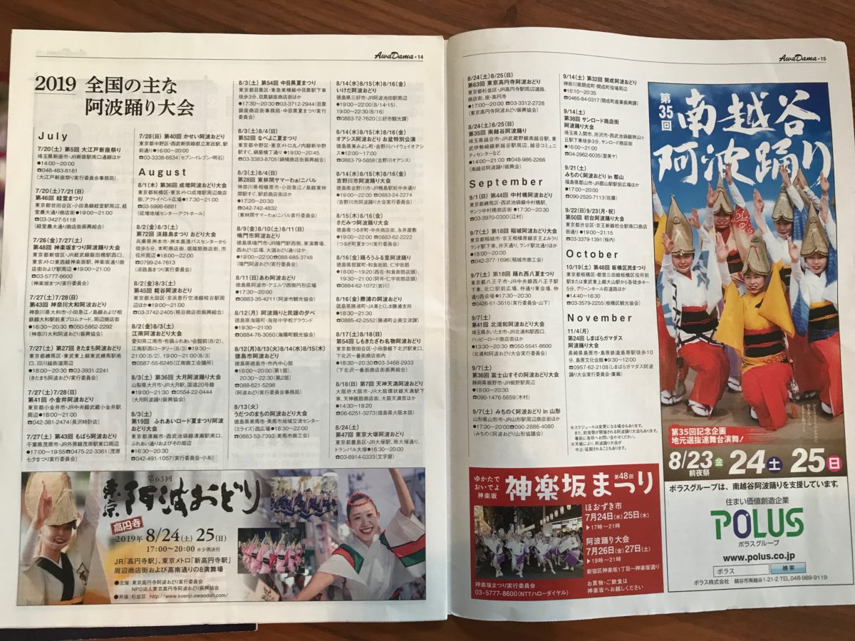 阿波おどり情報誌 Awa Dama(あわだま)には全国の阿波踊り情報が。北海道から九州まで様々な地域で阿波踊り大会が行われている。