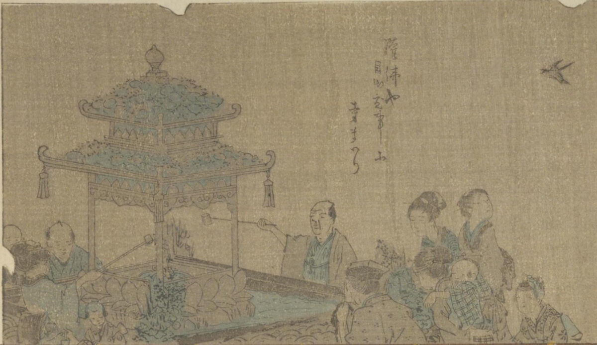 正式には、「灌仏会(かんぶつえ)」と呼ばれ、推古天皇の時代には中国から日本に伝わっていたといわれています。記録には「承和七(840)年四月八日に、清涼殿にしてはじめて御灌仏の事を行はしめ給ふ」と残っています。