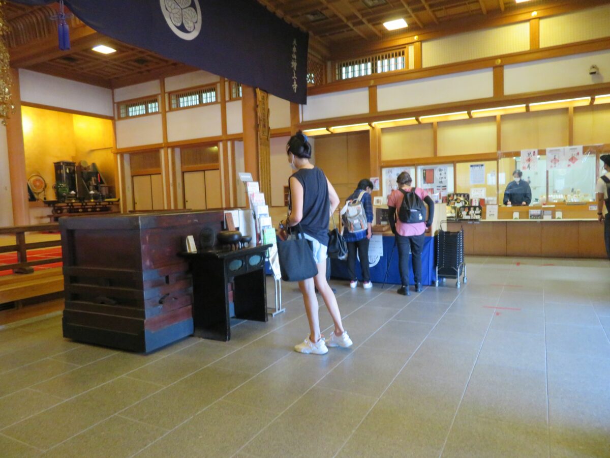 大殿地下1階の宝物展示室入口では一年を通して、皇女和宮、五百羅漢、台徳院殿の御朱印を頂くことができます。また、月単位で釈尊十大弟子の御朱印の頒布が行われています。7月は阿難陀尊者です。さらに期日限定で徳川将軍霊廟特別御朱印も準備されます。