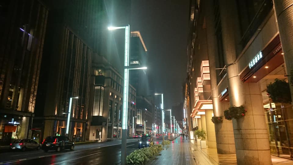 日本橋~八重洲~京橋~銀座~新橋と長い道程を通過して行きます。長い道程ではありますが、とても綺麗な景色でした。人がおらず、綺麗なイルミネーションを独占できる、とても豪華なひと時でした。新橋あたりになると、人が増えてきて生活感が戻ってきましたが、このあたりから足に違和感を感じるようになってきました。そんな状態の中、東京タワー近くの芝公園まで到着することが出来ました。