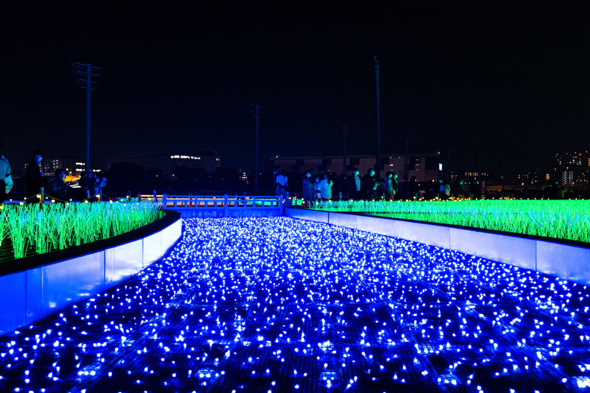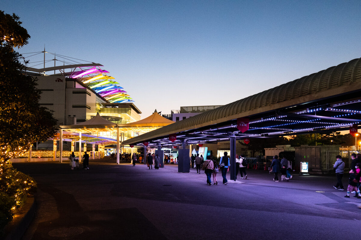 「東京メガイルミ」の場内は、大きくわけると後述する「TWINKLEエリア」と「和のきらめきエリア」の2つのエリアで構成され、フォトスポットやビューポイントがいっぱい!一回りすると1時間~1時間30分(歩数にすると15,000歩)ほどの宏大な敷地を利用しています。