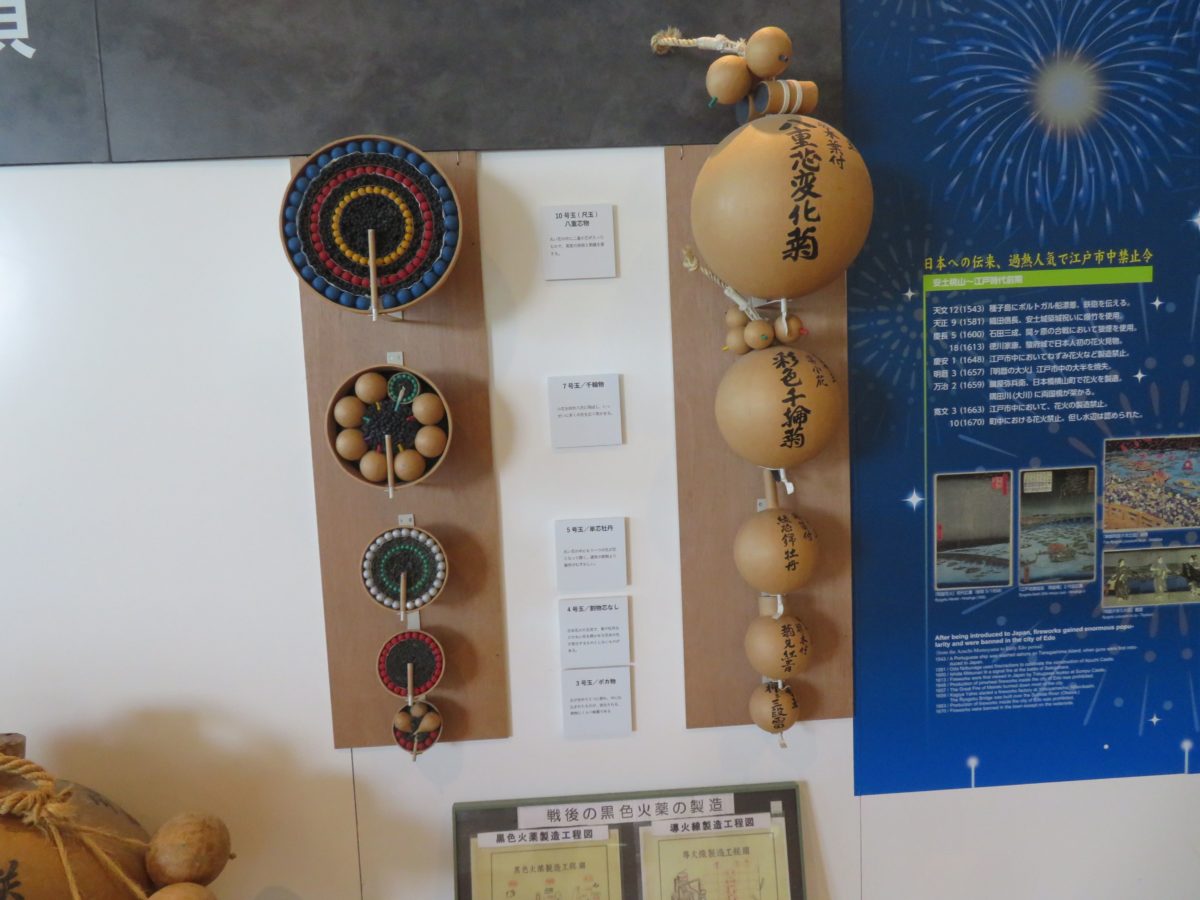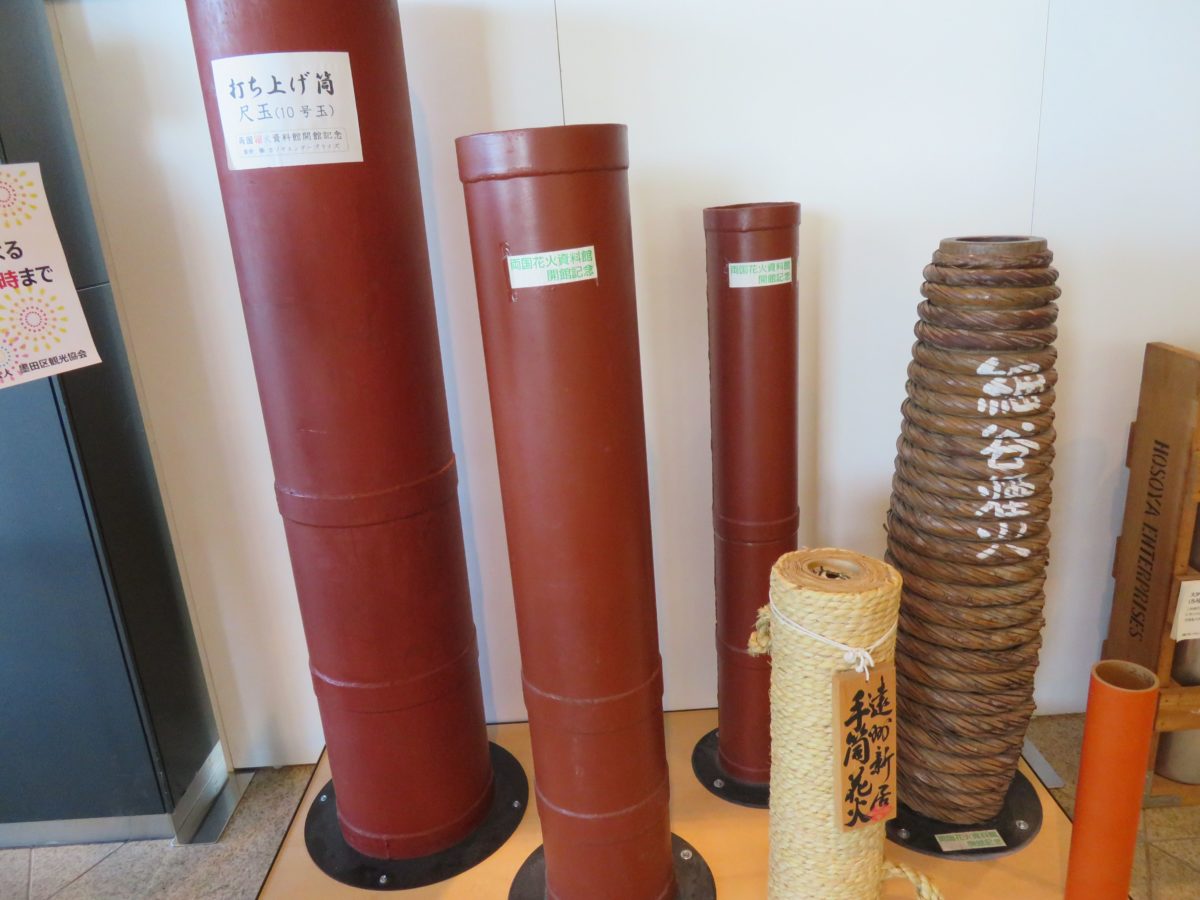 チケット売場のある4階のホールでは、「未来につなぐバーチャル花火」の開催期間中には、花火に関する展示が行われました。実際の花火大会の会場では目にする機会の少ない、花火の玉や打ち上げのための備品などを見ることができたのです。