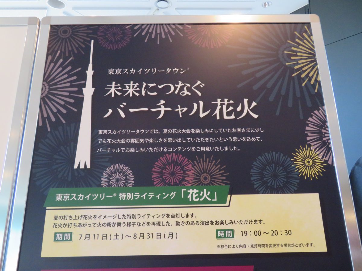 2020年は新型コロナウイルス感染拡大防止のため、全国各地で恒例となっているオマツリやイベントが軒並み中止となりました。東京の夏の風物詩、隅田川花火大会が開催されなかったことを残念に思う人々も数多くいらっしゃることでしょう。夏の花火鑑賞を諦めることができないファンのために、2020年7月11日~8月31日に東京スカイツリーで「未来につなぐバーチャル花火」が開催されました。