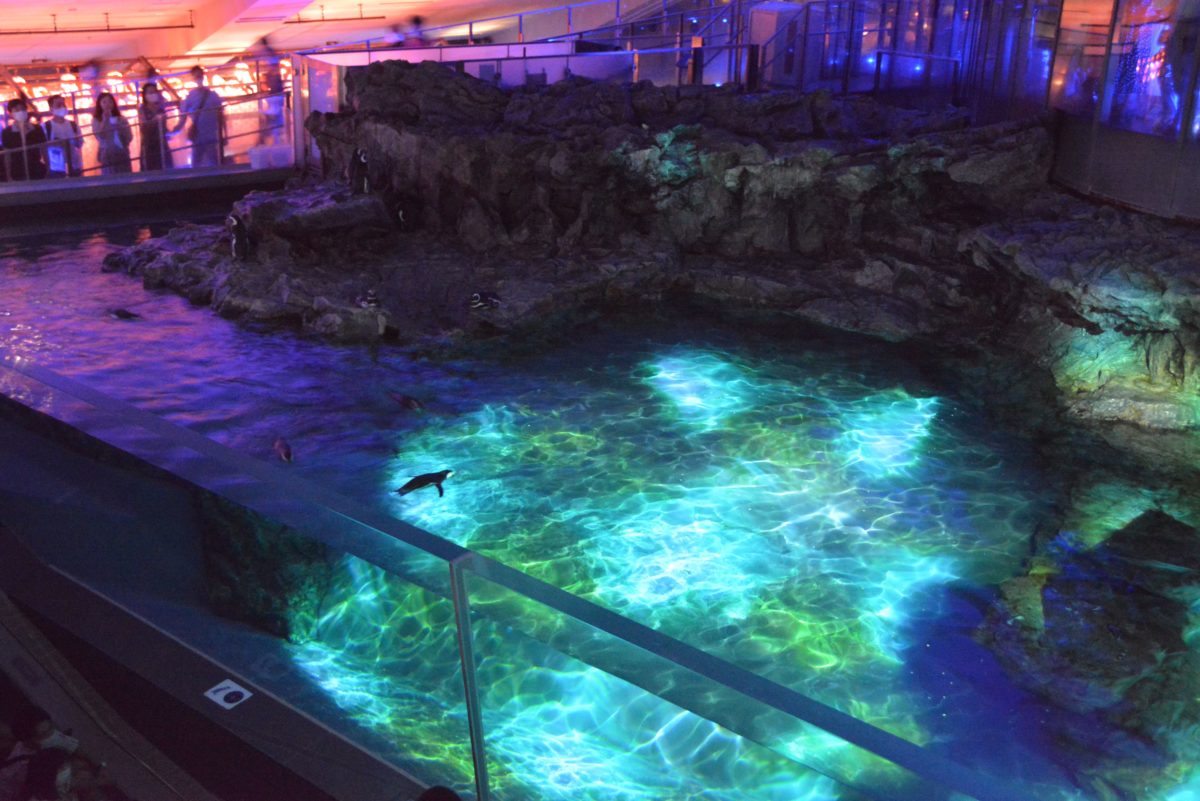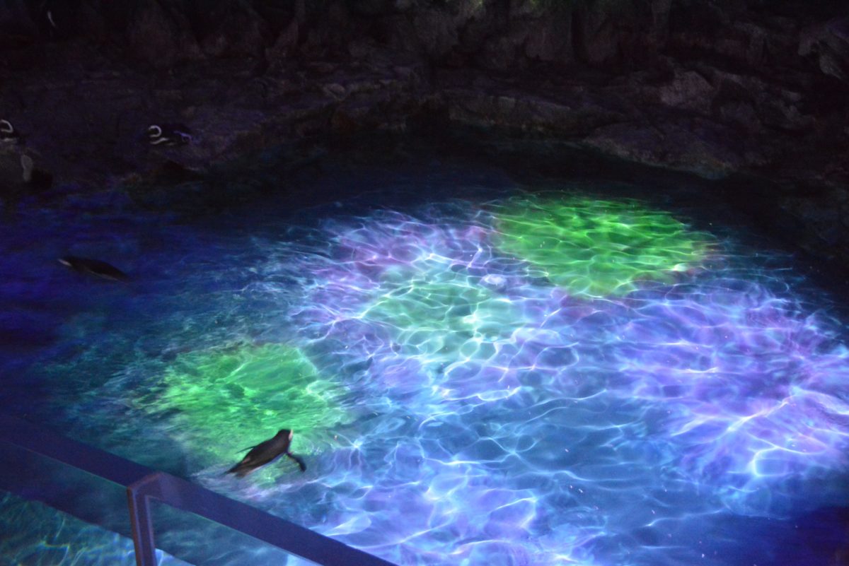 東京スカイツリーでの「バーチャル花火」はユニークなイベントですが、ツリーの真下のすみだ水族館でも、珍しいイベントが解されました。サマーナイトプロジェクションマッピング「ペンギン花火」です。国内では最大級の屋内開放型のペンギンプールの底面に花火の映像を投影されるのです。夏の風物詩である花火と、水の中を泳ぐペンギンがコラボするのです。