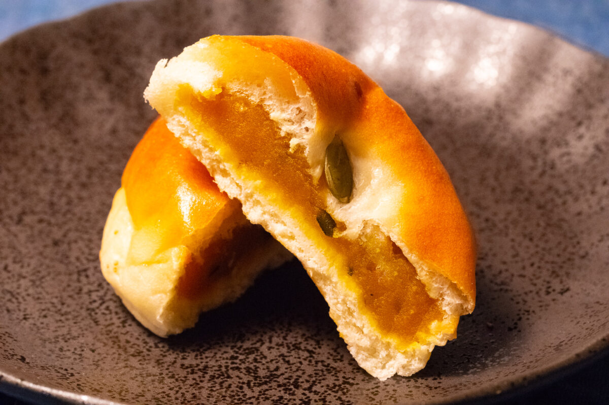 かぼちゃの種がトッピングされた「あんパン」。
