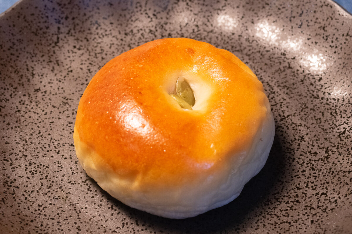 かぼちゃの種がトッピングされた「あんパン」。