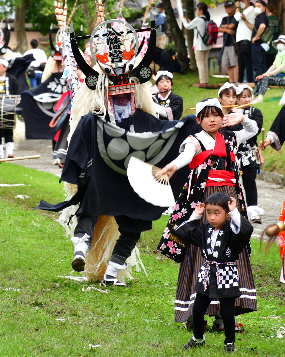 流鏑馬の終了後は、郷土芸能のパレードを馬場で行う「馬場めぐり」。