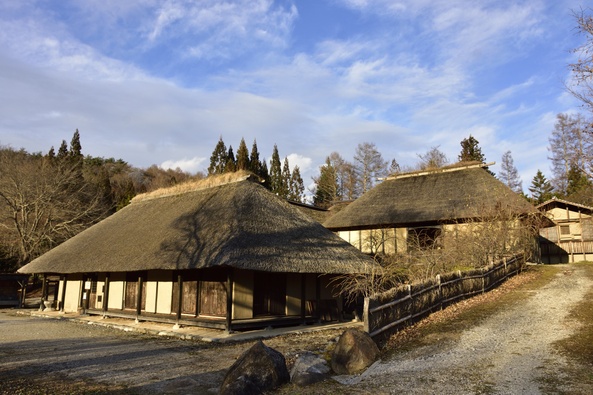 江戸中期~明治初期に建てられた豪農の邸宅「曲がり屋」を7棟も移築。日本の農村の原風景が広がり、お馬さんにも会えます。