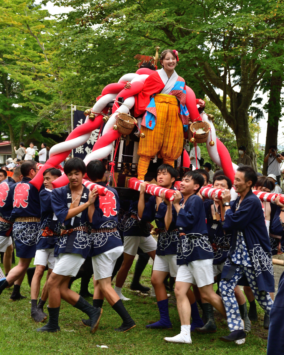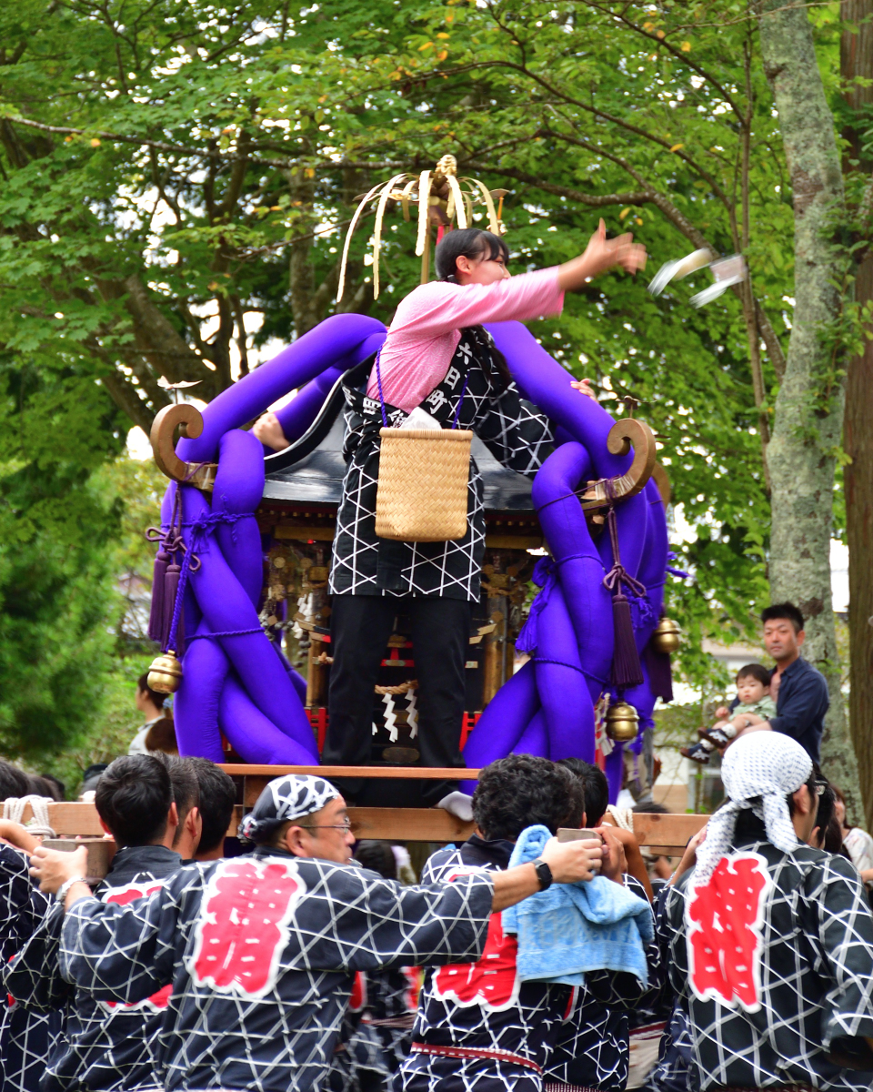 こちらは少年が乗っています。小さいうちから、お祭りデビューですね!