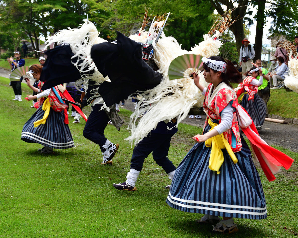 花巻・江刺地方では、踊り手自らが太鼓を鳴らす「太鼓踊り系」、遠野地方では、踊り手は幕を持ちながら踊る「幕踊り系」に分かれます。各団体により、「獅子・鹿子・しし」と、名称が変わります。