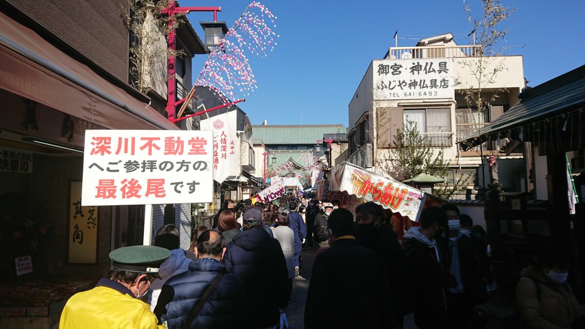 深川不動堂の初詣の様子 -屋台もあり活気あり!-