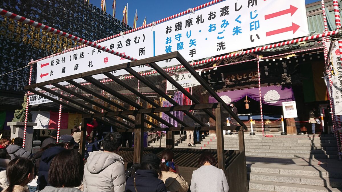お寺の境内に入ると、お守り購入や、おみくじ購入の待機者が多く見られました。参拝の列は200m程となっており、大変な賑わいを感じました。参拝が終了したら、そのまま近くの富岡八幡宮に向かいました。