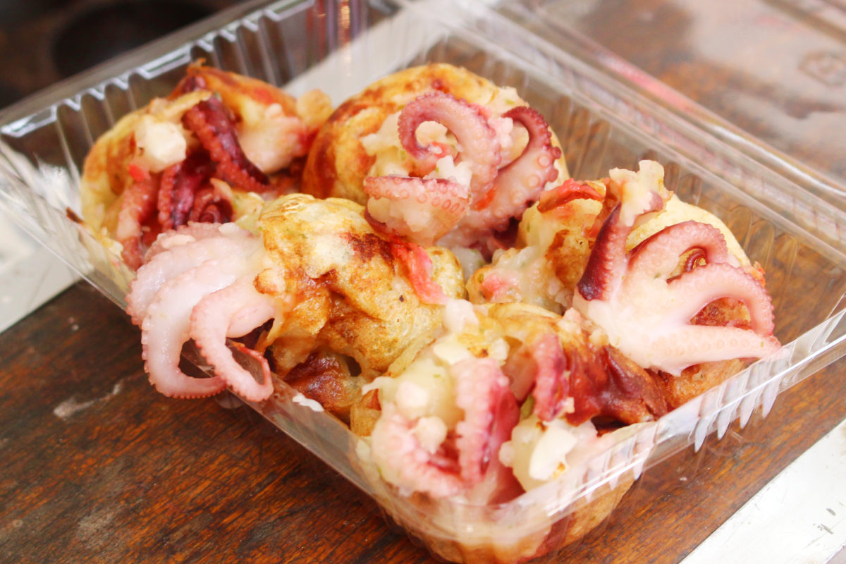 食べ物では焼きまんじゅうや、最近テレビで話題らしいイイダコがまるごと入ったタコ焼きなんかも出ていました!