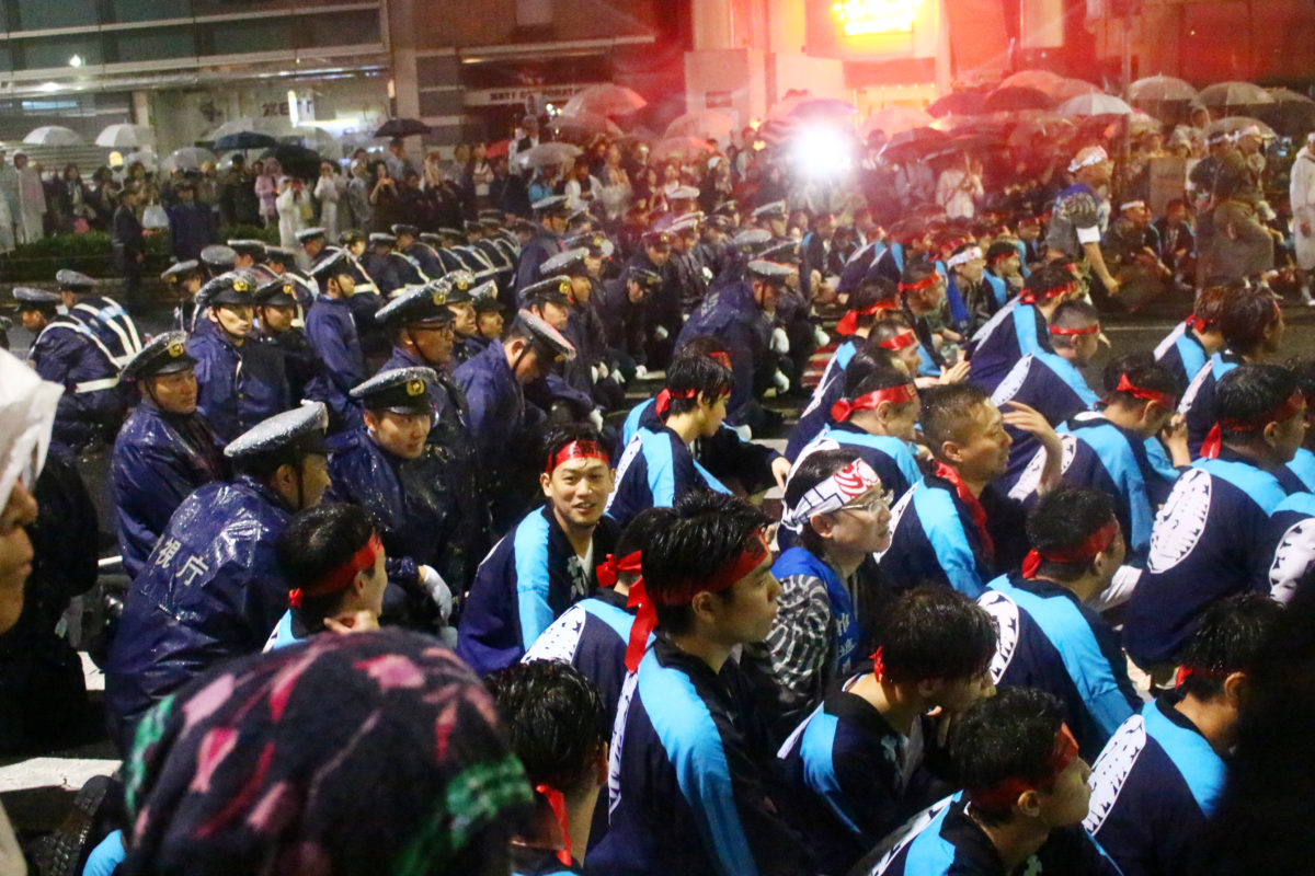 ですが大丈夫です!これだけたくさんの警察と若い衆が見守っているので、大事にはなりません笑