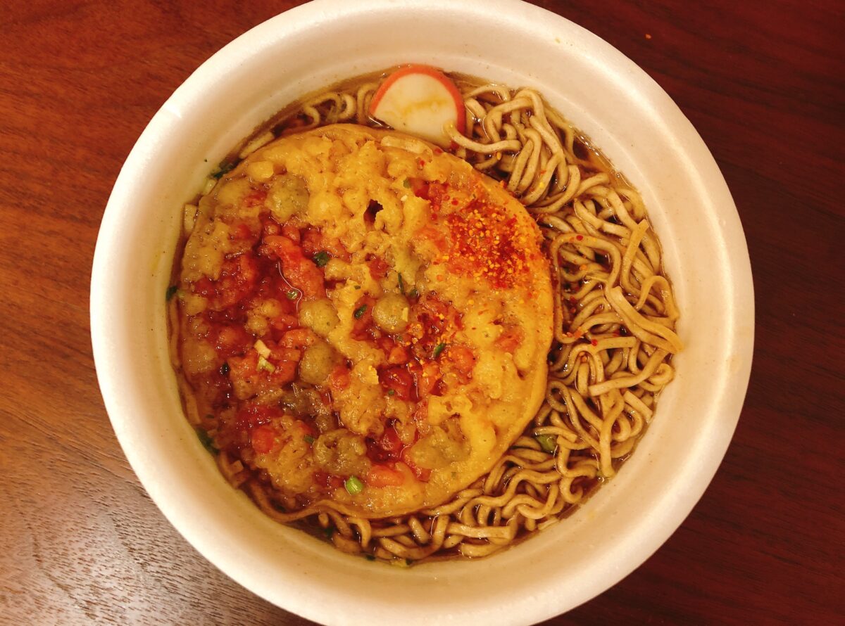 天ぷらの香ばしいエビの香りと一緒に食べる、お出汁の効いたあたたかいお蕎麦が最高!お昼ご飯にも、夜食にもピッタリです。